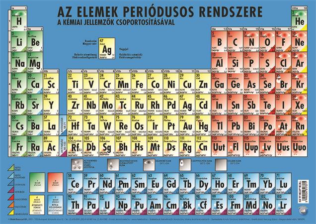 Az egyes elemek fizikai illetve kémiai jellemzőit a tabló két oldalán ábrázoltuk. Az előoldalon a kémiai tulajdonságok kaptak hangsúlyt az egyes mezők adatai között, míg a hátoldalon a fizikai jellemzők. Természetesen a rendszám és egyéb alapvető információk mindkét oldalon egyaránt megtalálhatók.